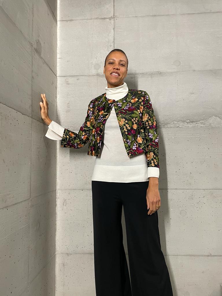 Kurzes Bolero-Jäckchen, mit Rundhalsausschnitt.
