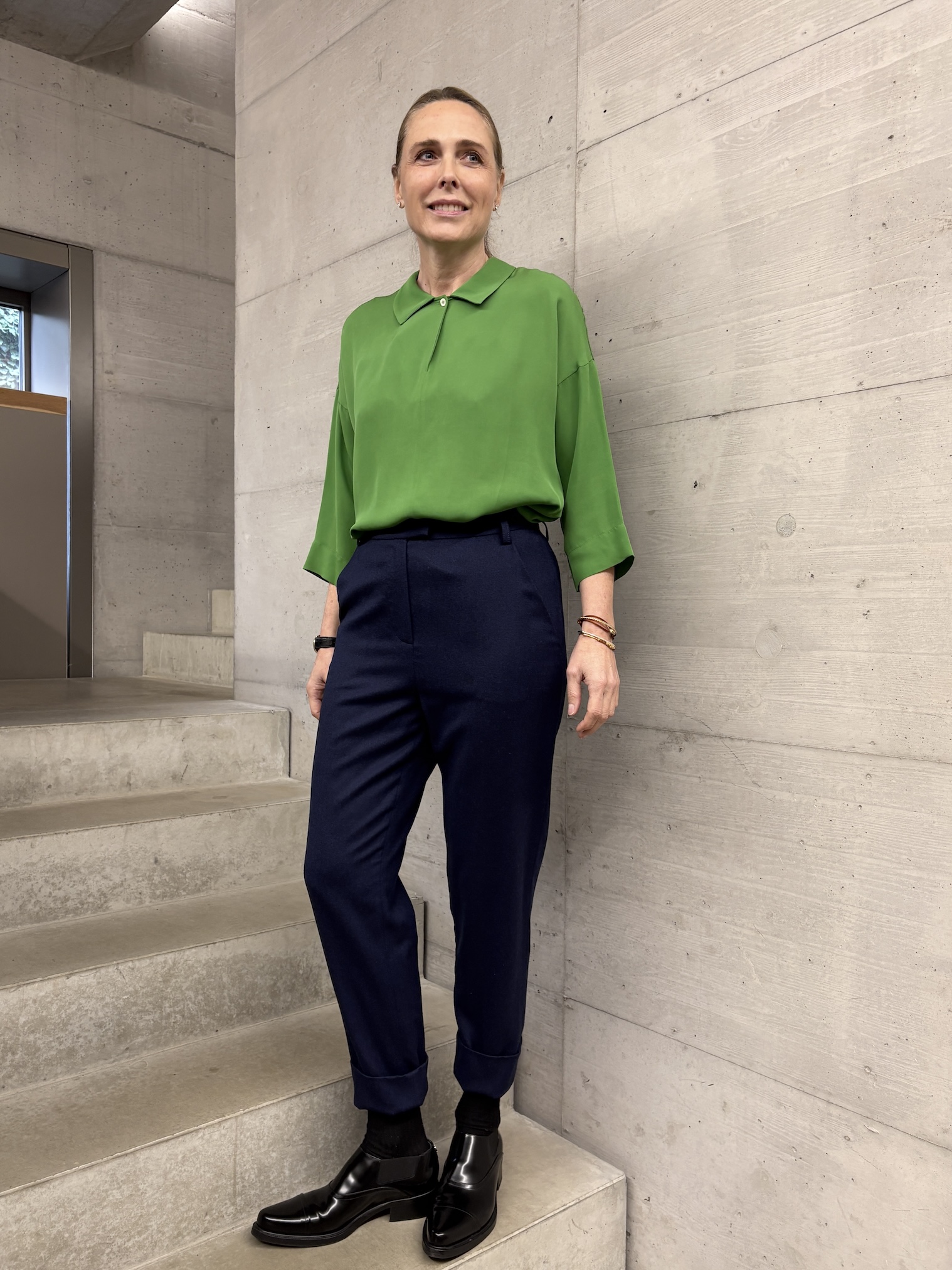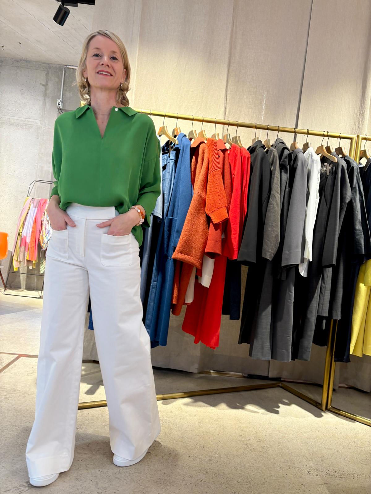 Spezielle Hemdbluse mit Kragen, ¾ Arm und einem Falten am Rücken. Erhältlich in den Grössen S, M und L.
