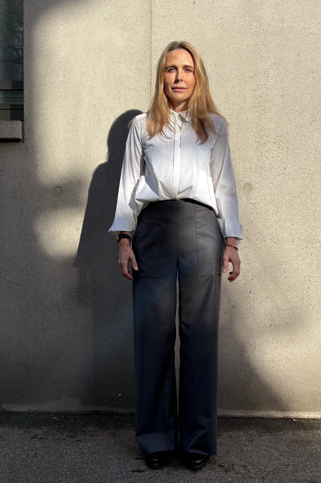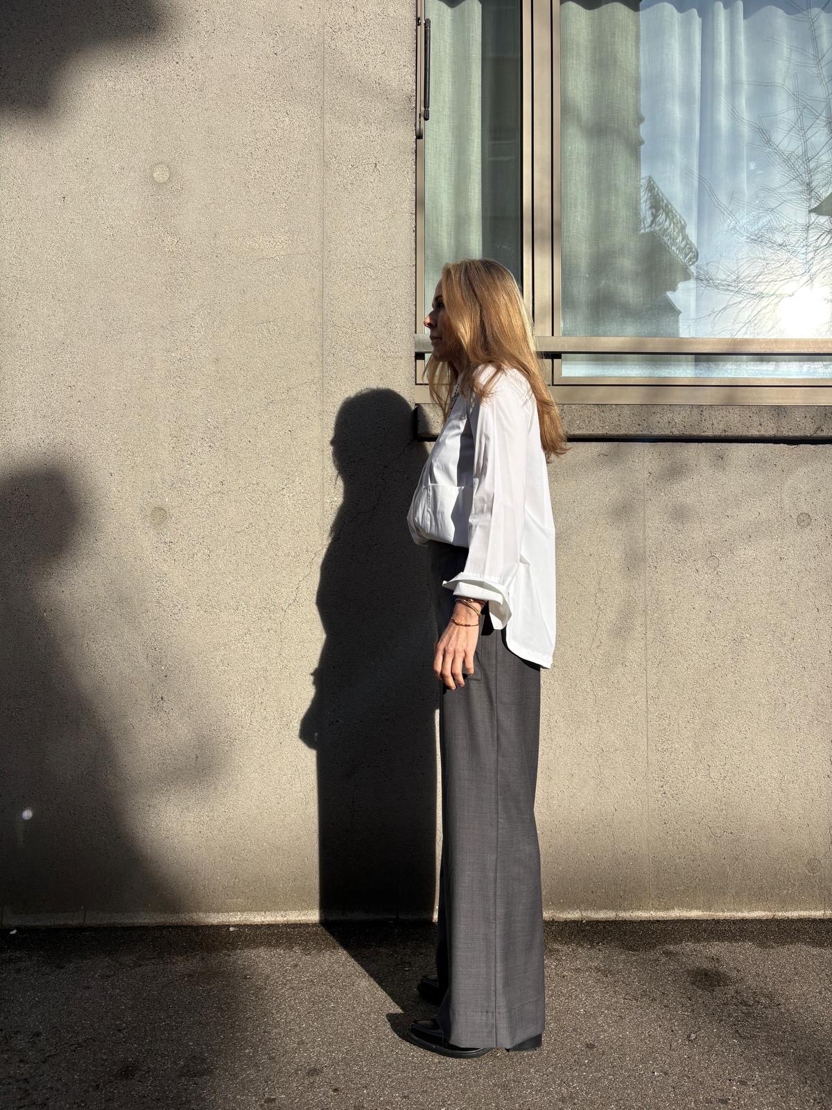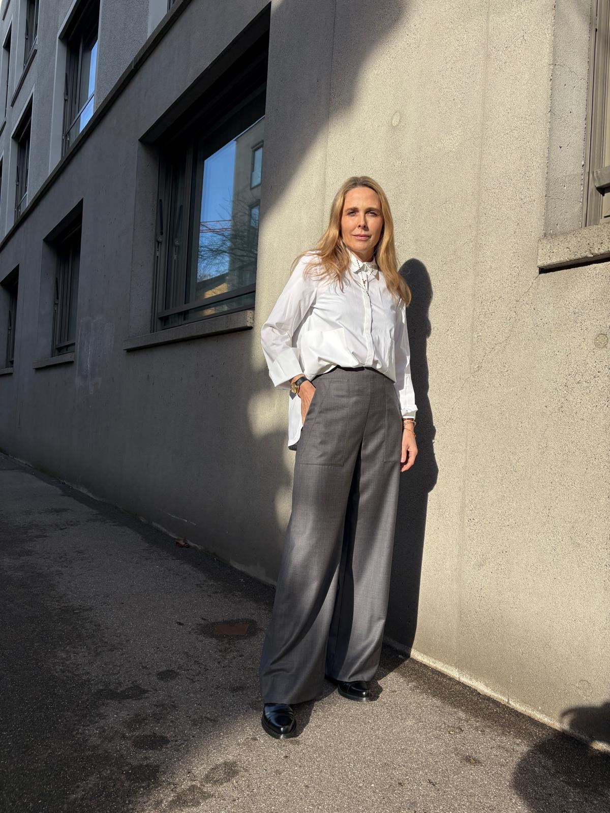 Weit geschnittene Anzugshose als perfekte Ergänzung zum Blazer Arvid. Hinten mit nahtverdecktem Reissverschluss und mit aufgesetzten Taschen vorn.