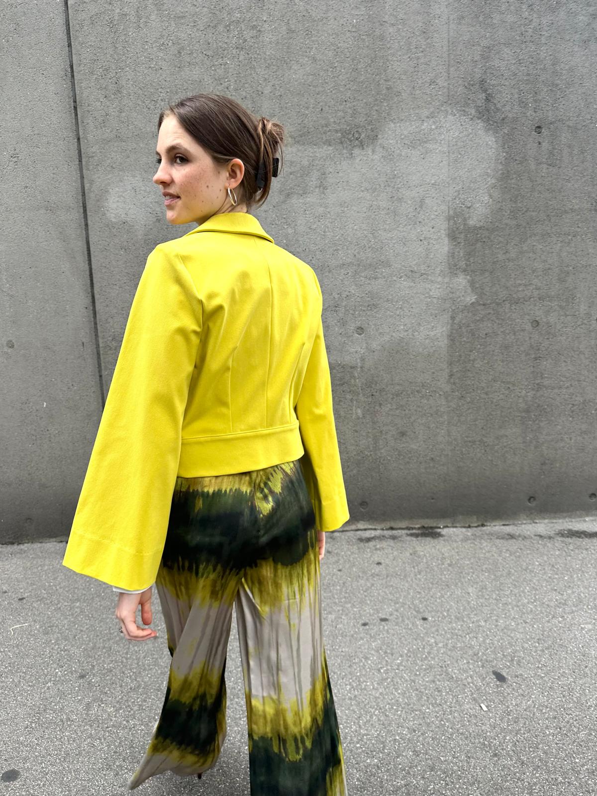Lange sehr weite Hose mit nahtverdecktem Reissverschluss Hinten in der Taille anliegend.